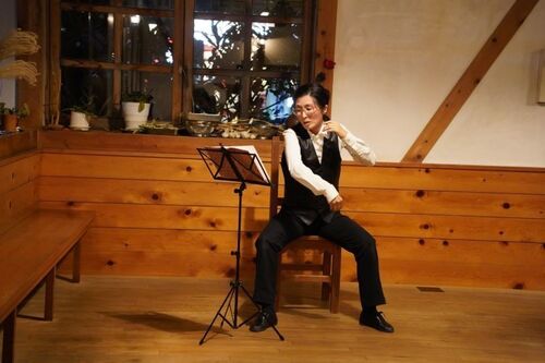 明日は、ばんまいさんでのひとり語り芝居『セロ弾きのゴーシュ』です。 今日は会場設営&リハ。 ってことで、リハ写真。 ゴーシュをやるのにぴったりなこの雰囲気。