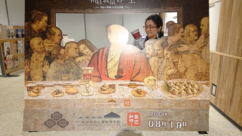 さて、ここで相方が、えらいものを見つけてしまう。2022年に開館したばかりの「福井県立一乗谷朝倉氏遺跡博物館」。特別展「朝倉義景の一生」開催中。で、19・20日は越前朝倉万灯夜と言うナイトイベントに合わせ、「一乗谷朝倉氏遺跡博物館、無料開放!21:00まで延長営業」と言うチラシ。
